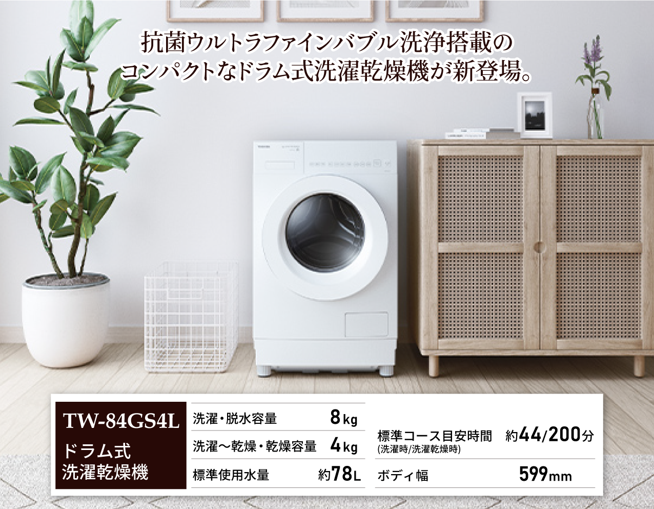 抗菌ウルトラファインバブル洗浄搭載のコンパクトなドラム式洗濯乾燥機が新登場。